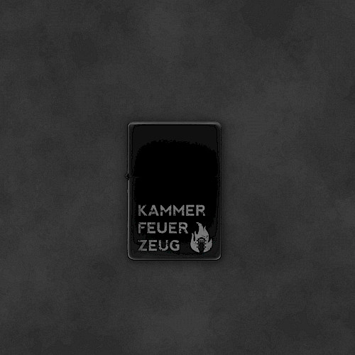Black storm lighter with print “KAMMERFEUERZEUT”