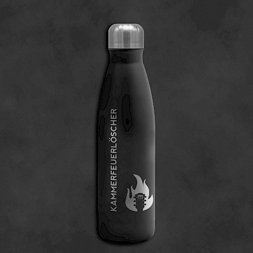 Double-walled thermos flask made of stainless steel with "KAMMERFEUERLÖSCHER" imprint.